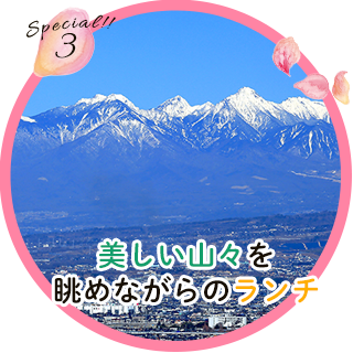 ランチは山梨の美しい山々を望みながらのお弁当!みんなでワイワイ楽しいひと時を過ごしましょう!モリモリ食べて後半戦もパワーアップ!